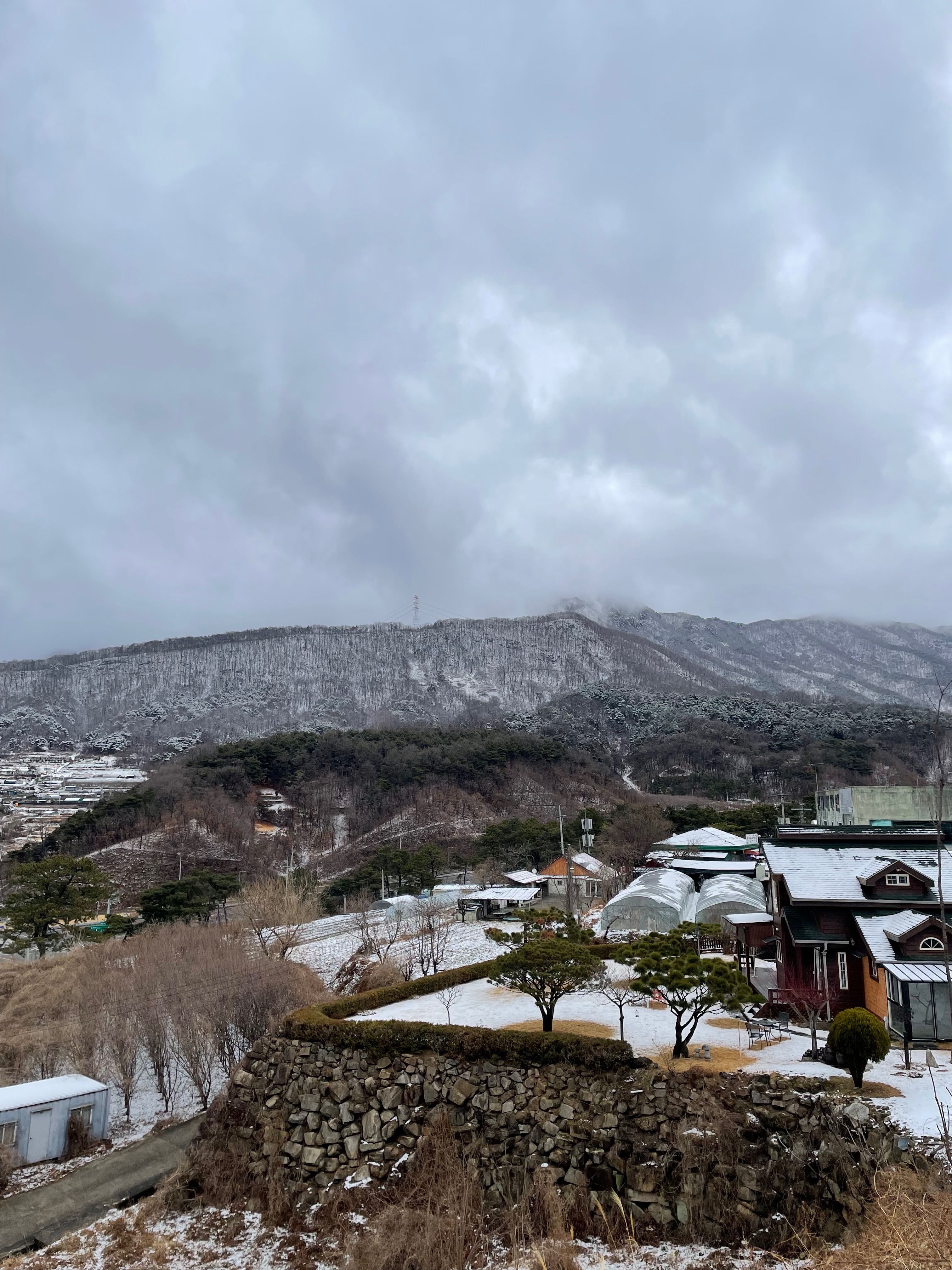 달리기 대회 다음날 구미 옆에 있는 도개 온천이라는 곳을 갔다. 어릴 적 주말에 자주 가던 곳인데 이곳에 노천탕이 있어 운치가 좋다. 탕 내의 사진을 찍을 수는 없으니 노천탕에서 보이던 풍경을 사진으로 첨부한다. 이 날 눈이 와서 경치가 좋더라.