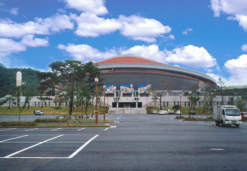 대회 시작할 때 약간의 비는 왔으나 달리기를 시작하자마자 비가 그쳐 해 없이 그늘진 길을 시원하게 달릴 수 있었다. 처음 시민 운동장을 나와 박정희 체육관 옆을 지나 수출탑을 향한다. 박정희 체육관은 아래 사진처럼 생겼는데 어릴 때 경부고속도로 하행을 타며 버섯집이다 버섯집!이라고 외치게 만든 건물이다.