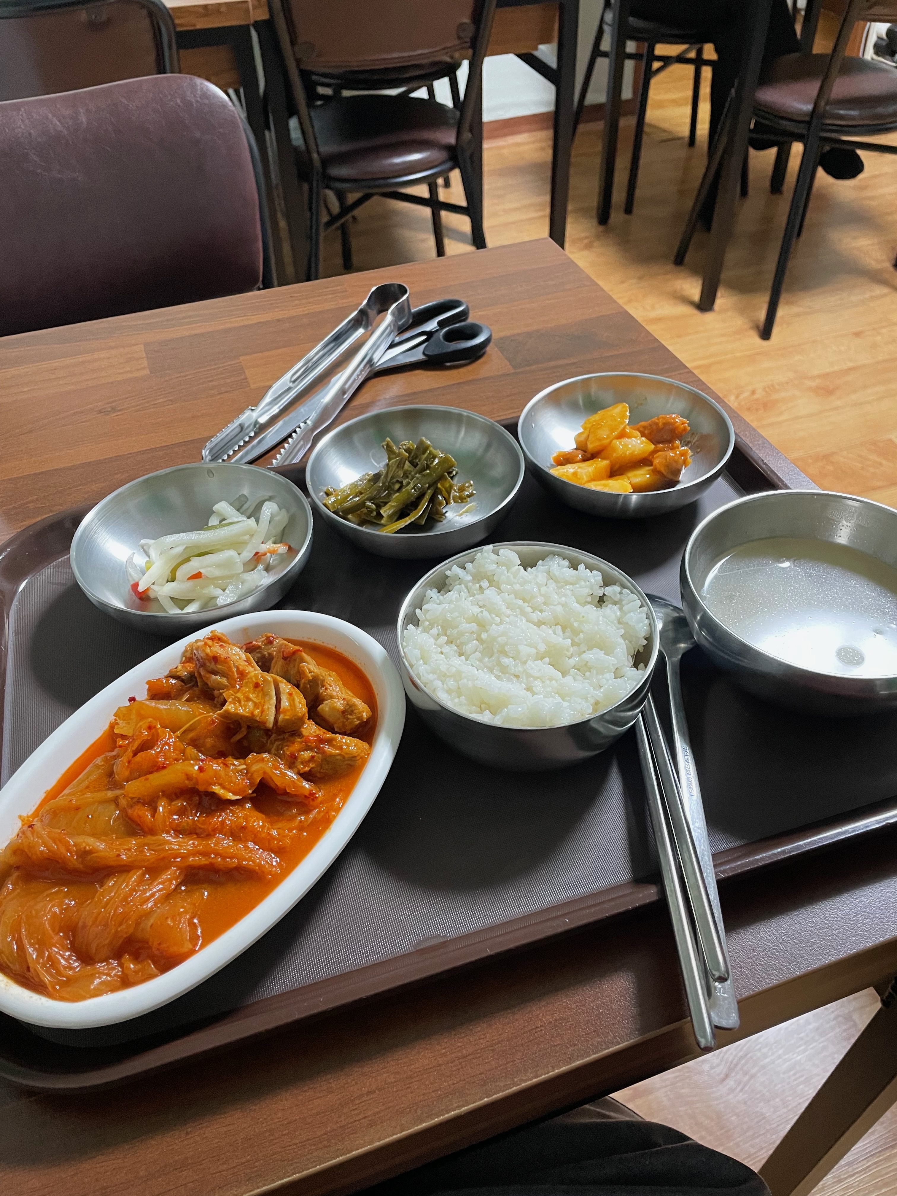 집에 밥해놨지만 돌아가는 길에 외식함. 너무 힘이 빠지기도 했고 입구를 지나칠 때 홀린 듯 멈추고 갈까말까 고민하게 만든 김치찜&닭불고기 집. 저게 7500원이다!